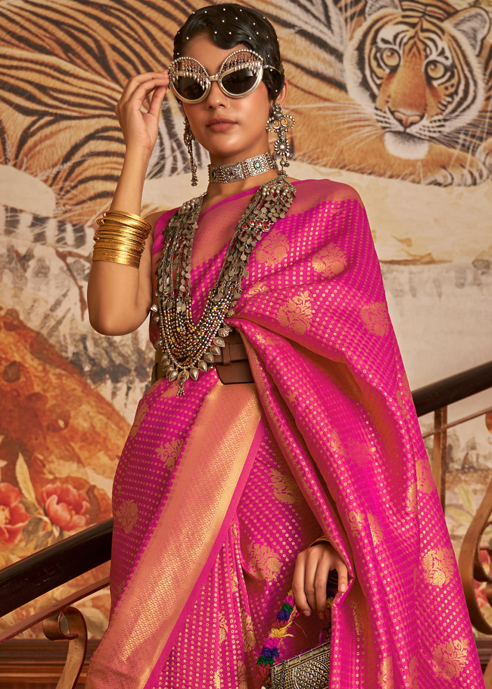 Magenta Pink Woven Banarasi Silk Saree