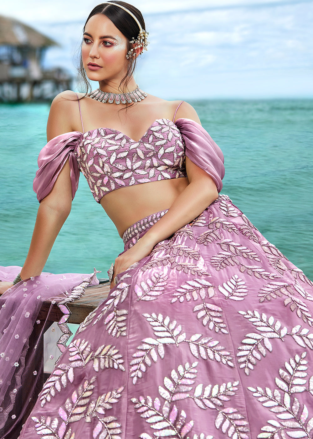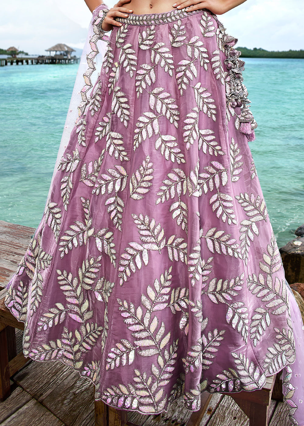 Mauve Purple Organza Lehenga Choli with Sequins,Coding,Moti & Zarkan work