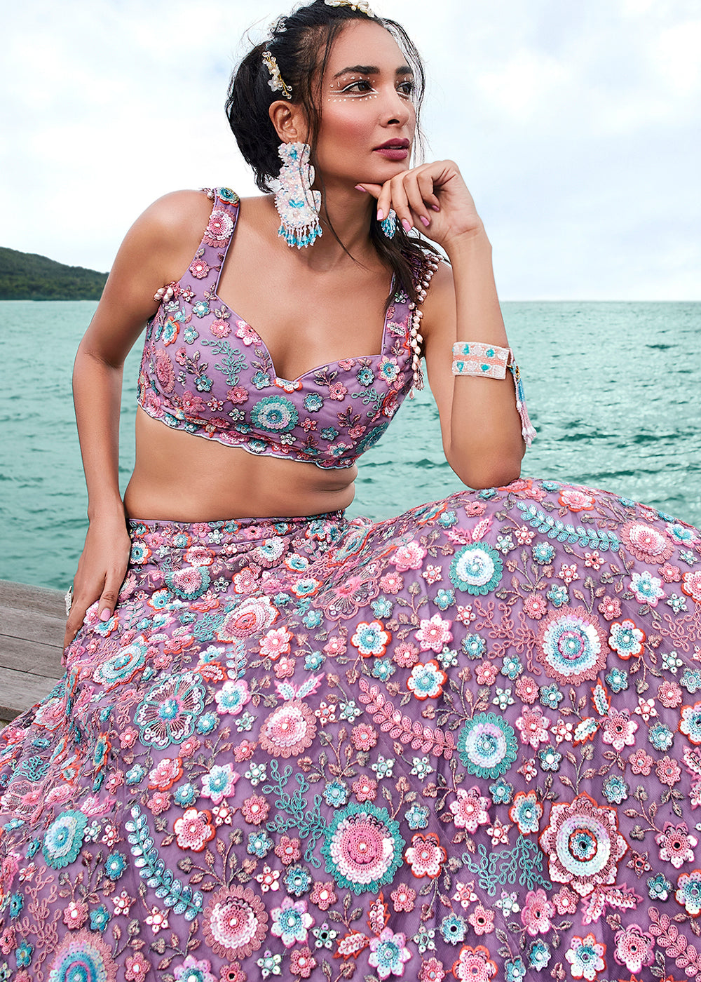 Shades Of Purple Net Lehenga Choli with Sequins,Mirror & Coding Thread Embroidery work