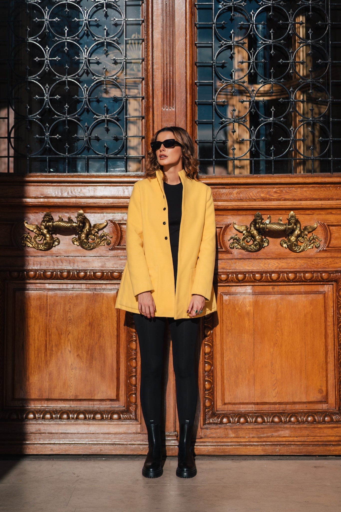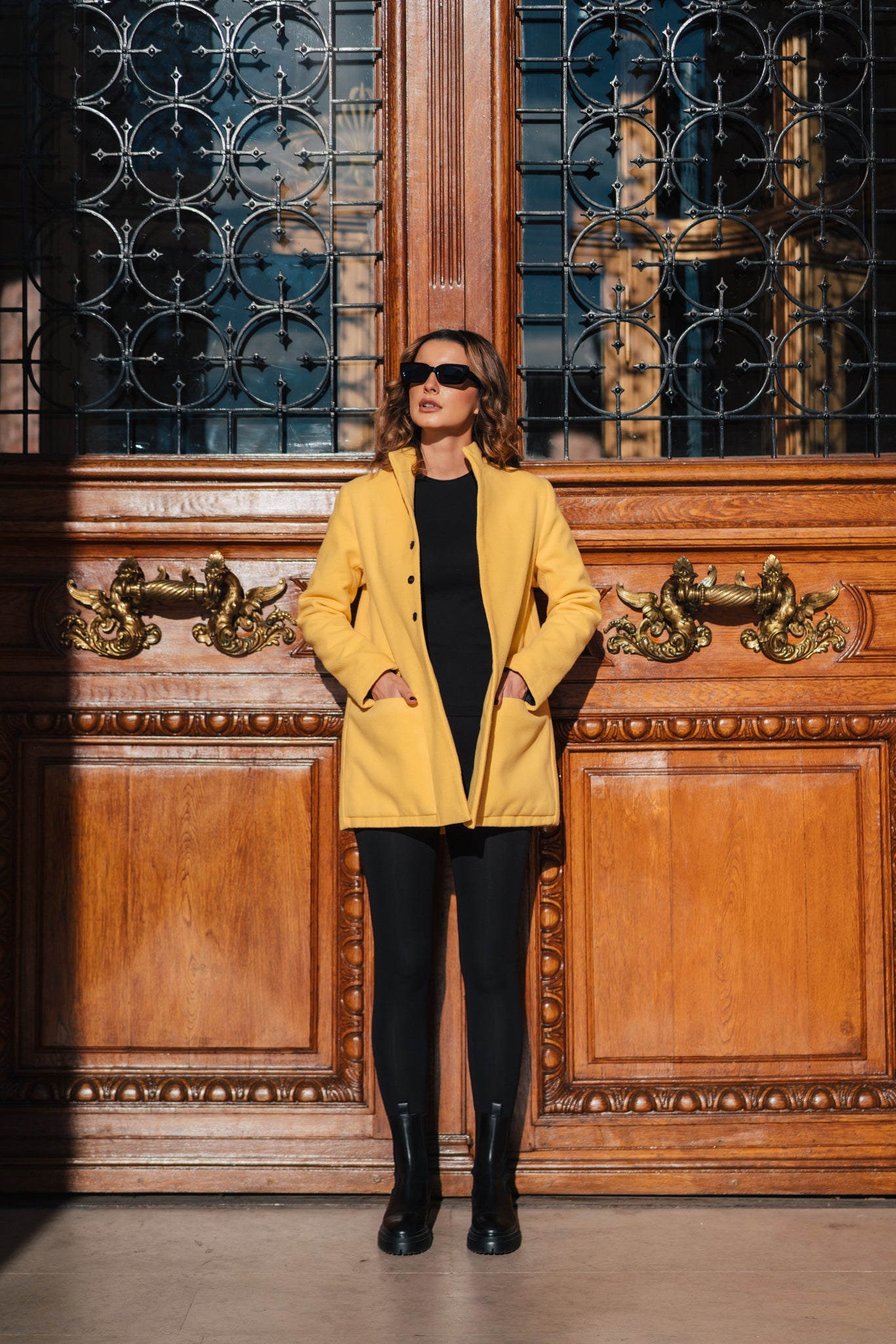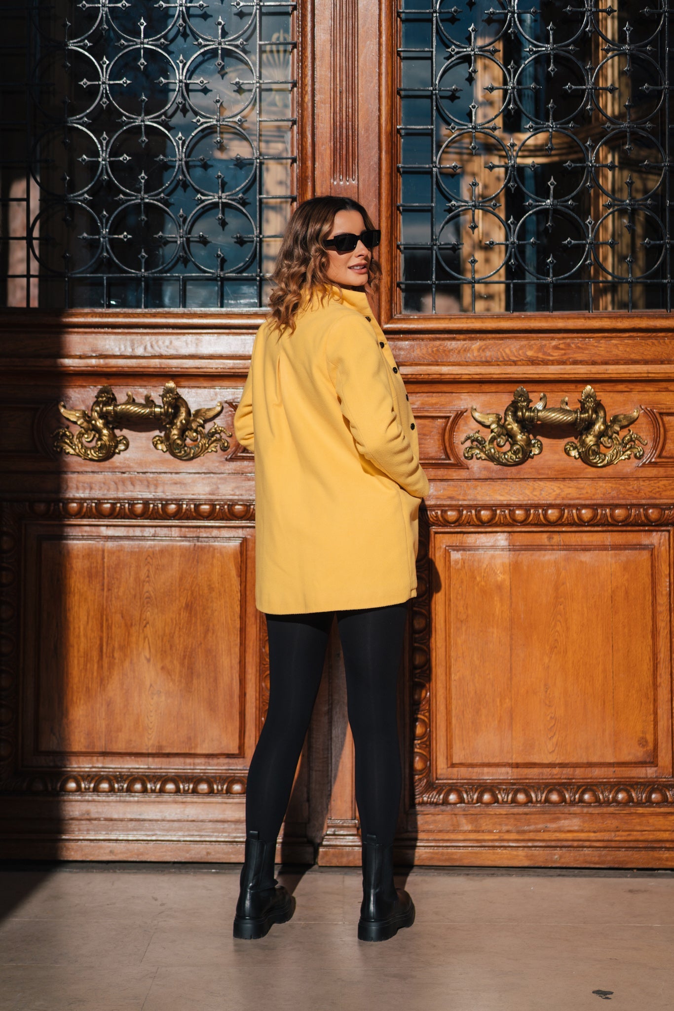 - Paltonul are o croiala dreapta care pica frumos pe lânga corp. Acesta se închide pe mijlocul fe?ei în capse. Buzunarele supradimensionate îi ofera un aspect deosebit;