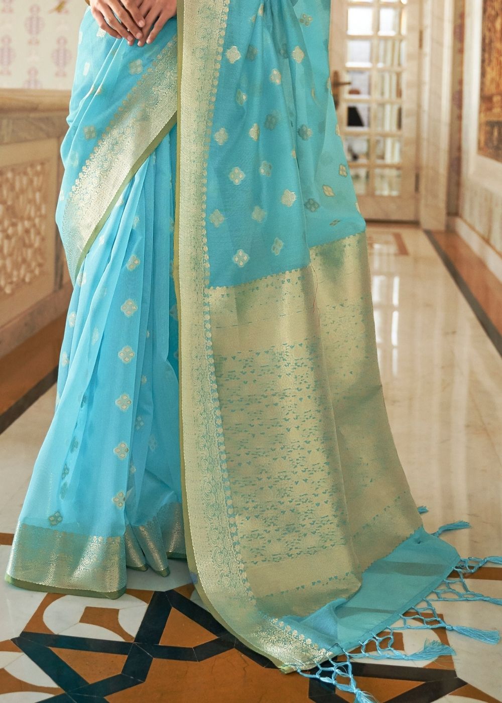 Arctic Blue Zari Woven Linen Silk Saree: Top Pick
