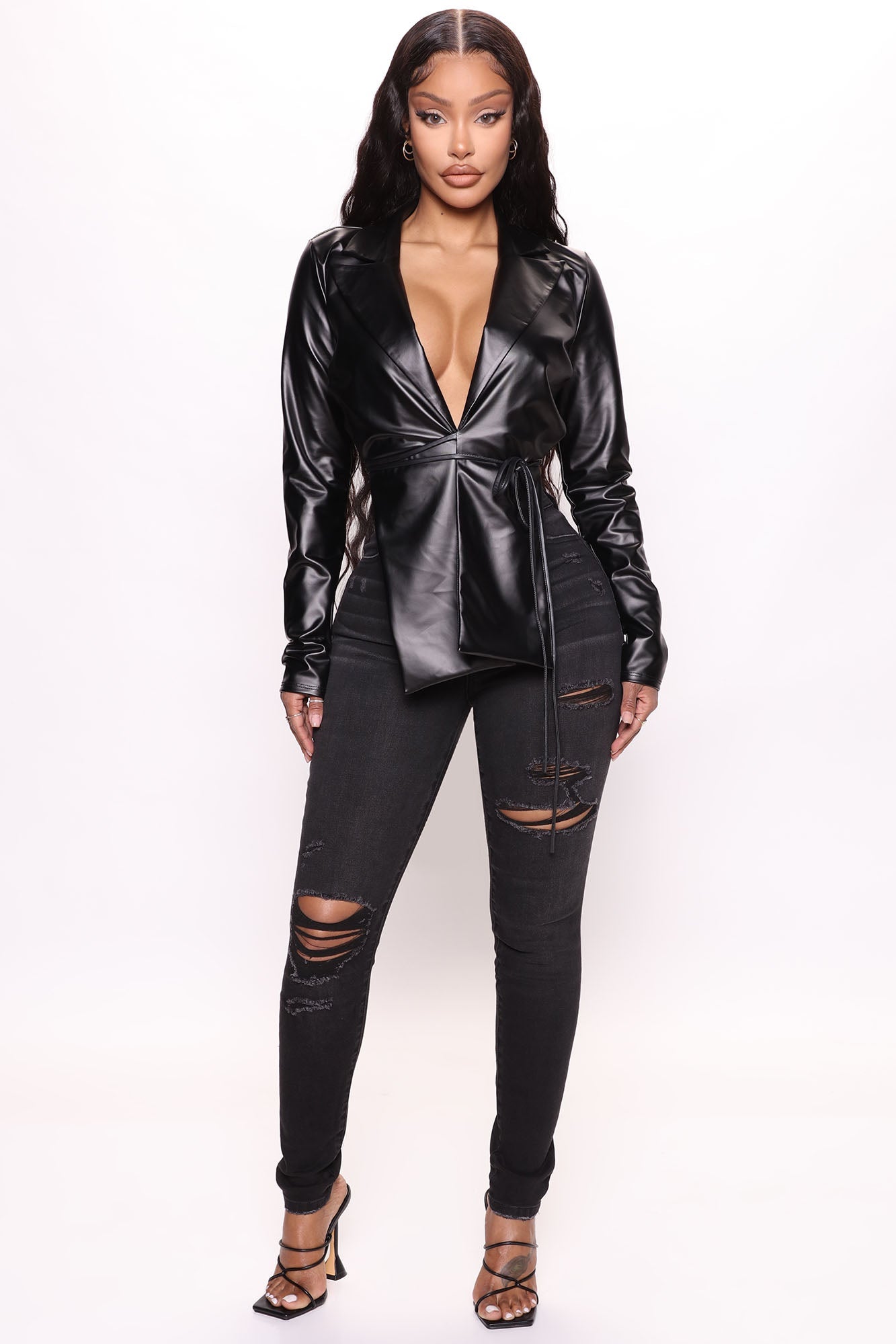 Bad Gal Faux Leather Wrap Top - Black