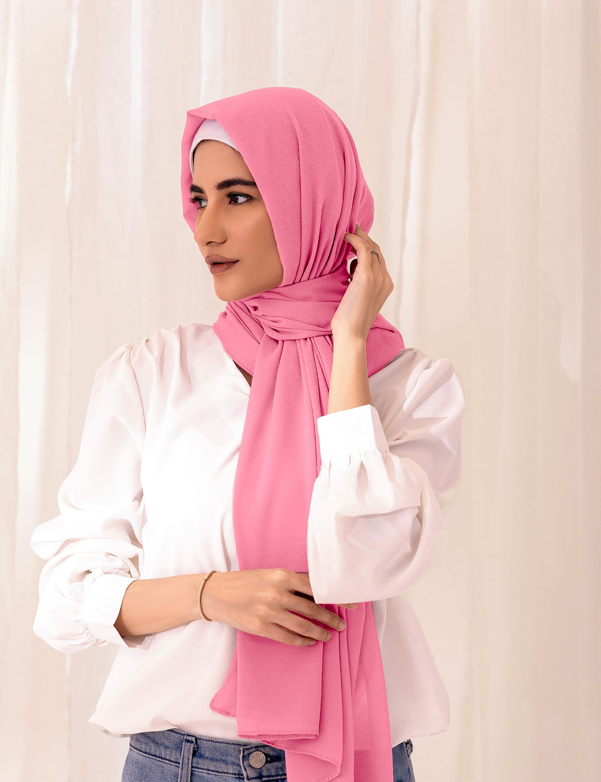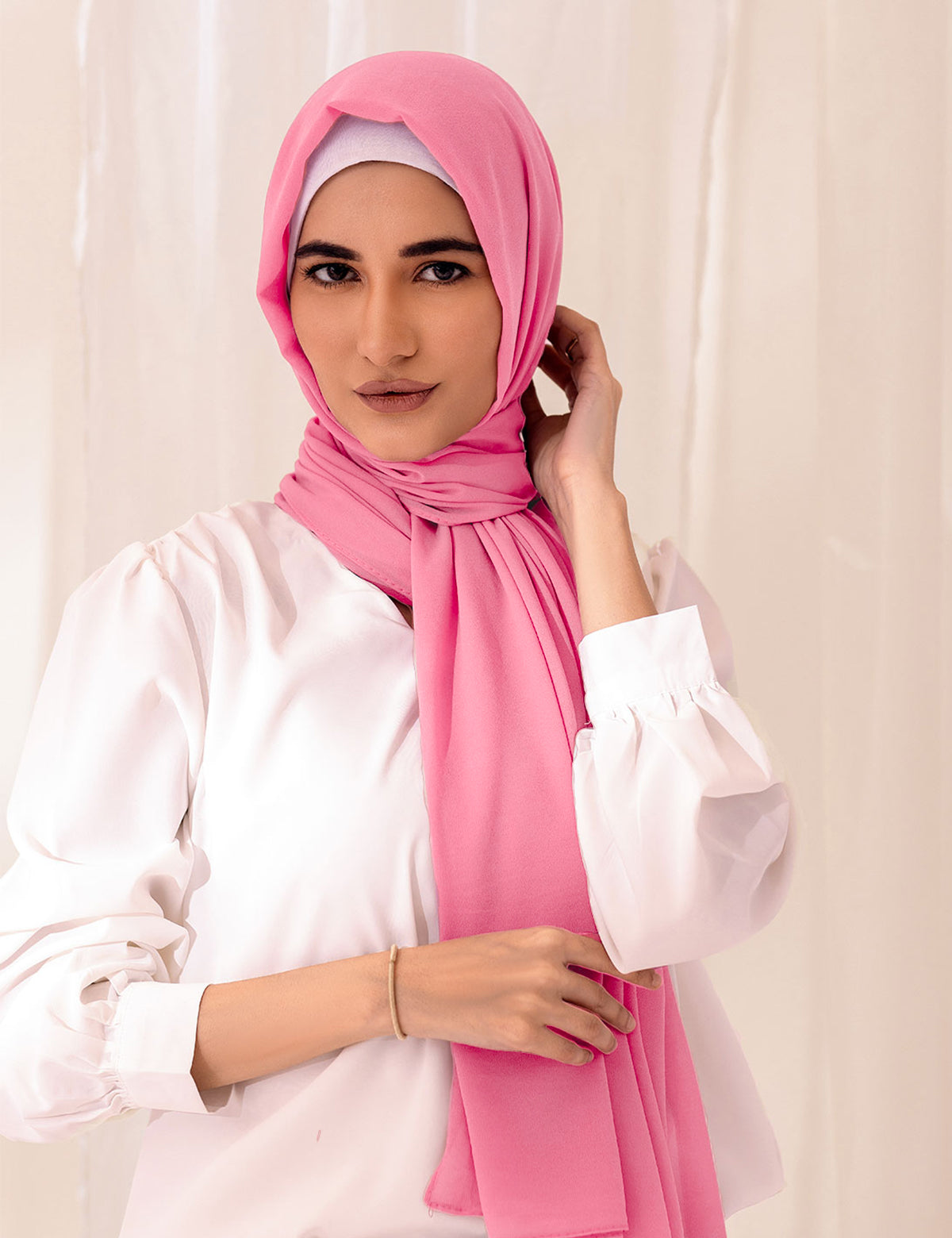 The ultimate everyday essential, Shop Hijab Co's chiffon georgette scarves online. These headscarves are designed to be lightweight, non-slippery, and breathable so they can be conveniently used as a stoler or for niqab purposes.