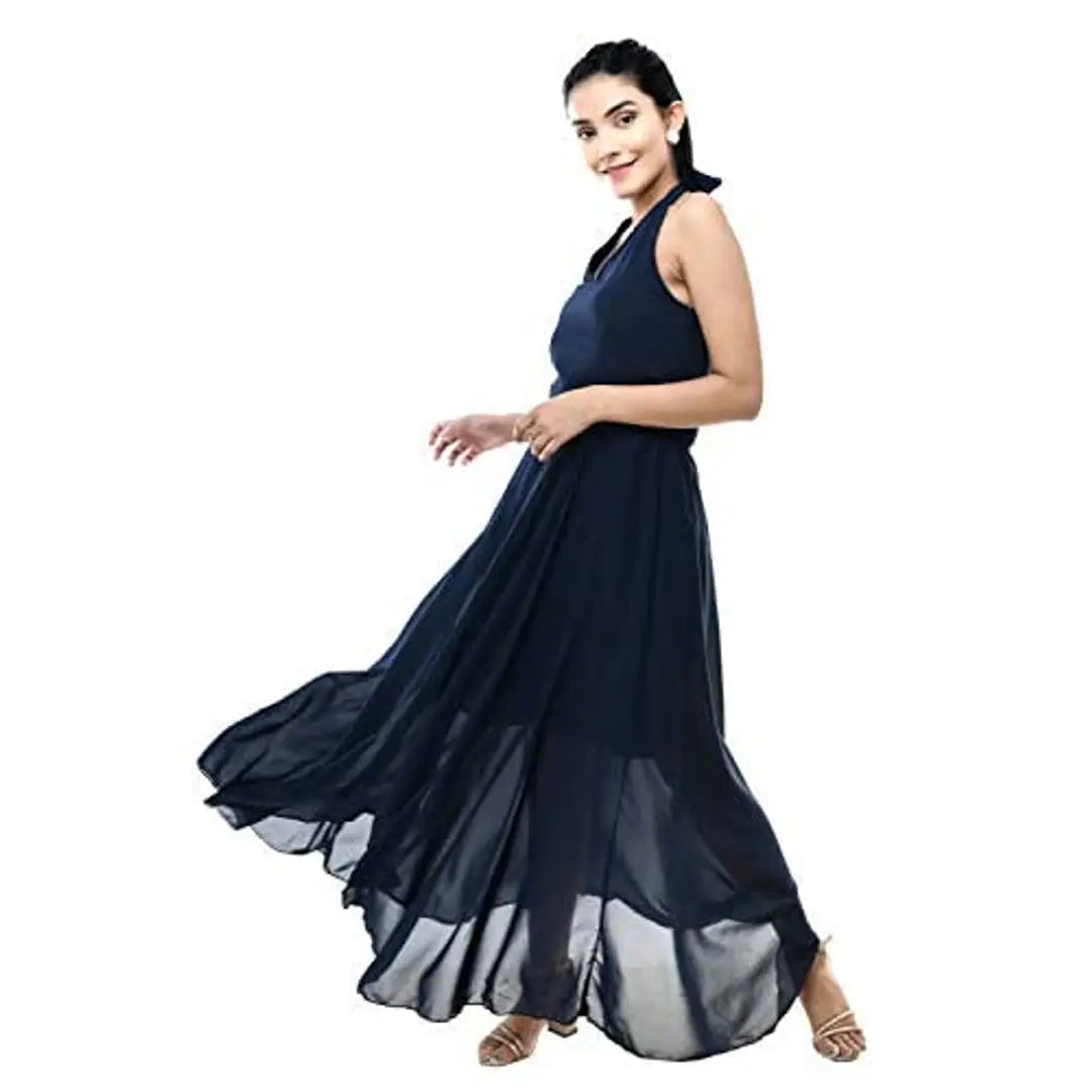 Fashion Hub Halter Dress for Women (Small, Navy)