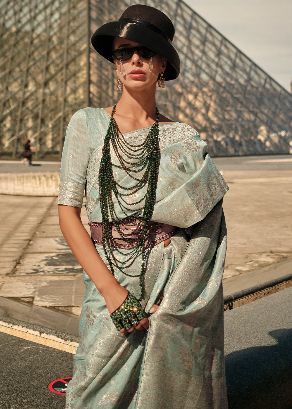 Fern Green Gota Zari Handloom Weaving Silk Saree