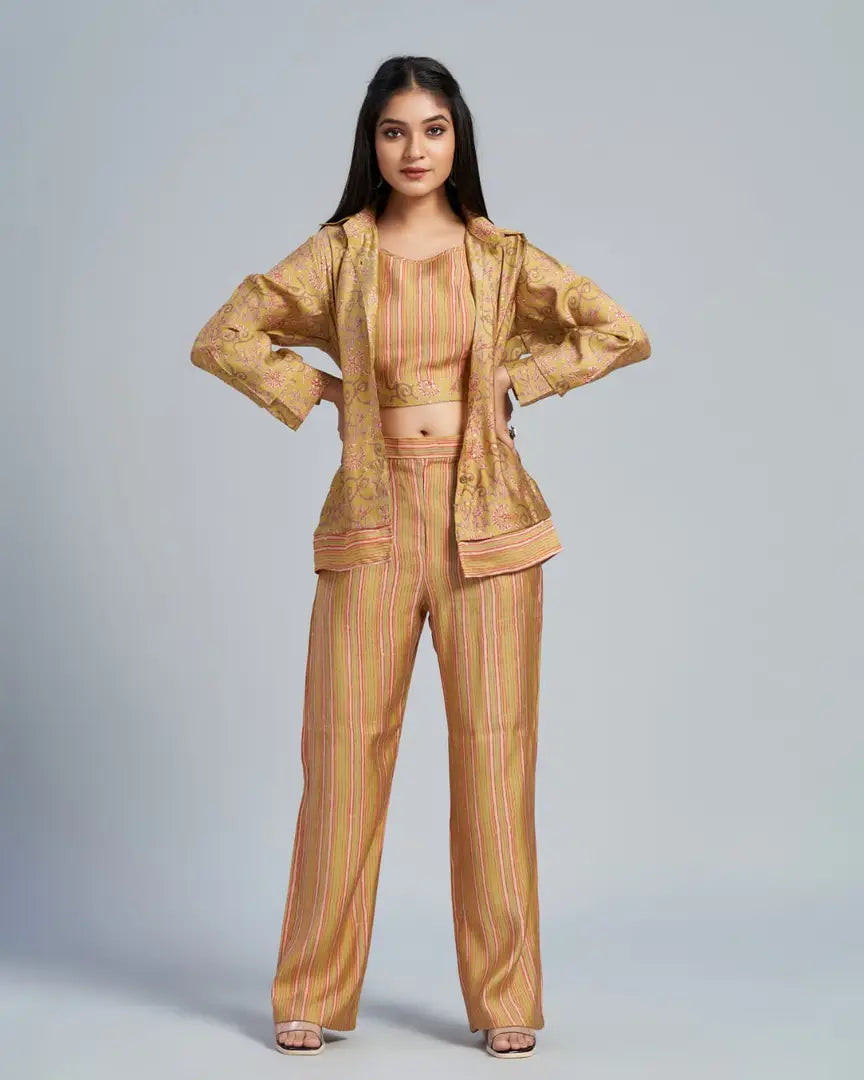 This Floral Printed Blazer Top With Pant three-piece set is a top trending fashion option for women who want to look their best while staying comfortable. It's available in different sizes to suit different body types and preferences, ensuring that everyone can enjoy this stunning ensemble