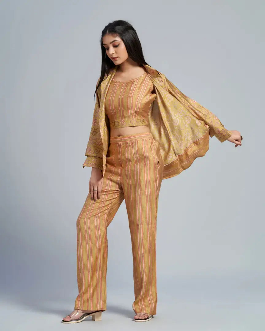 Name : Women's Floral Printed Blazer Top With Pant | Pink Cord-Set/ Three Piece
