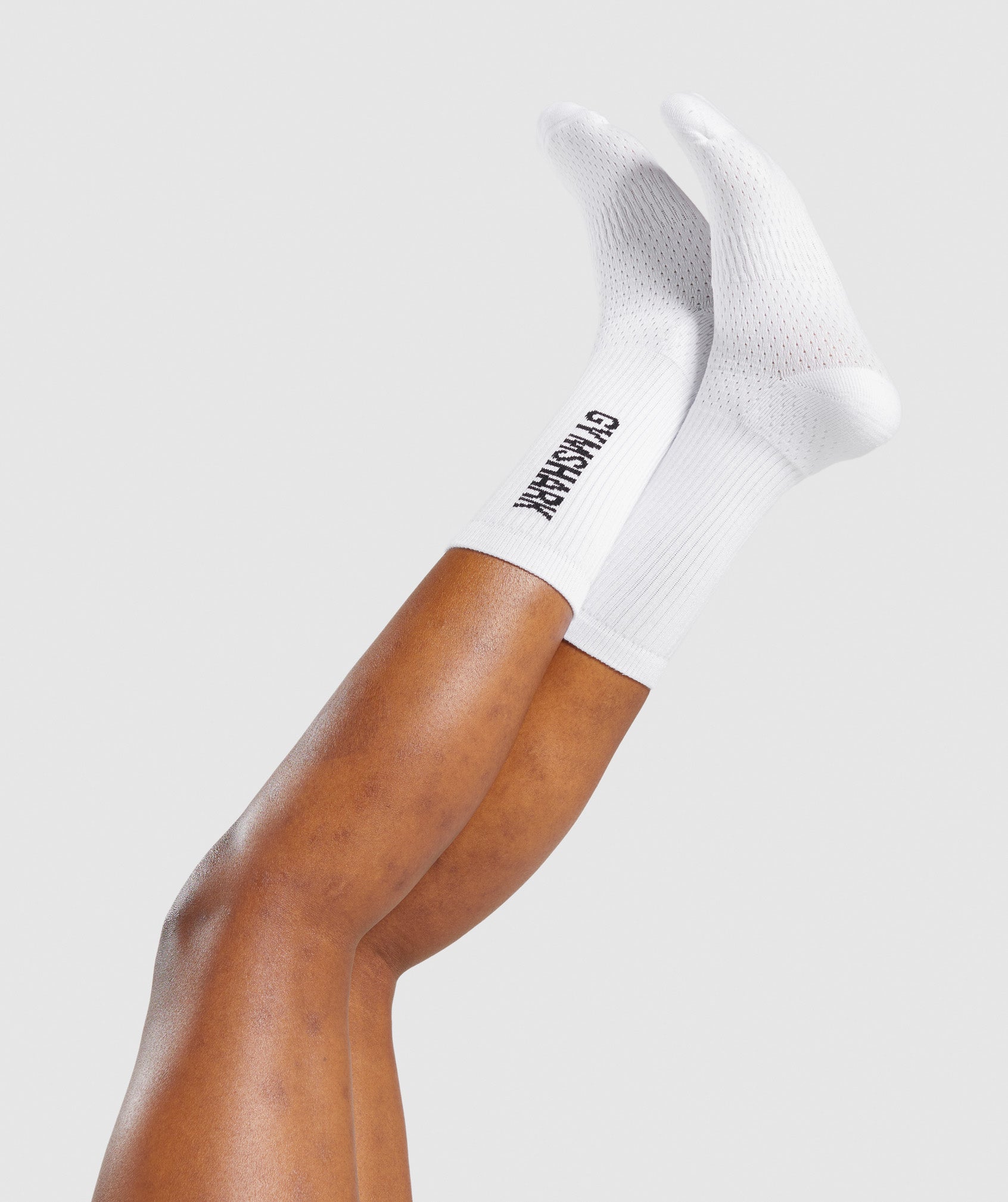 The Gymshark Premium Logo Crew Socks provide comfort, cushioning and contouring with a mix of reinforced stretch and ribbing and a flattering fit to the calf. You can be sure you’ll step with support and step with style, from treadmill to sidewalk.