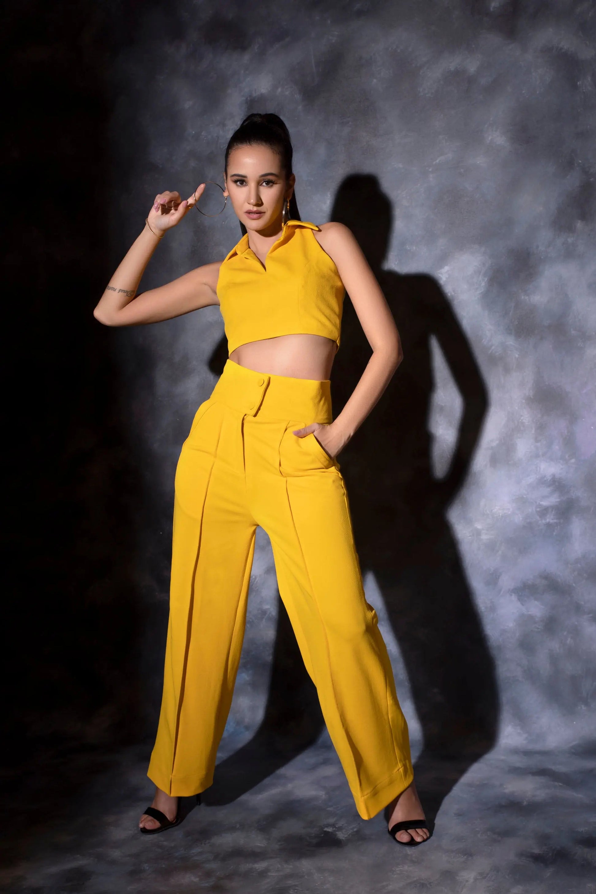 Stylish high waist mango yellow Cord Set