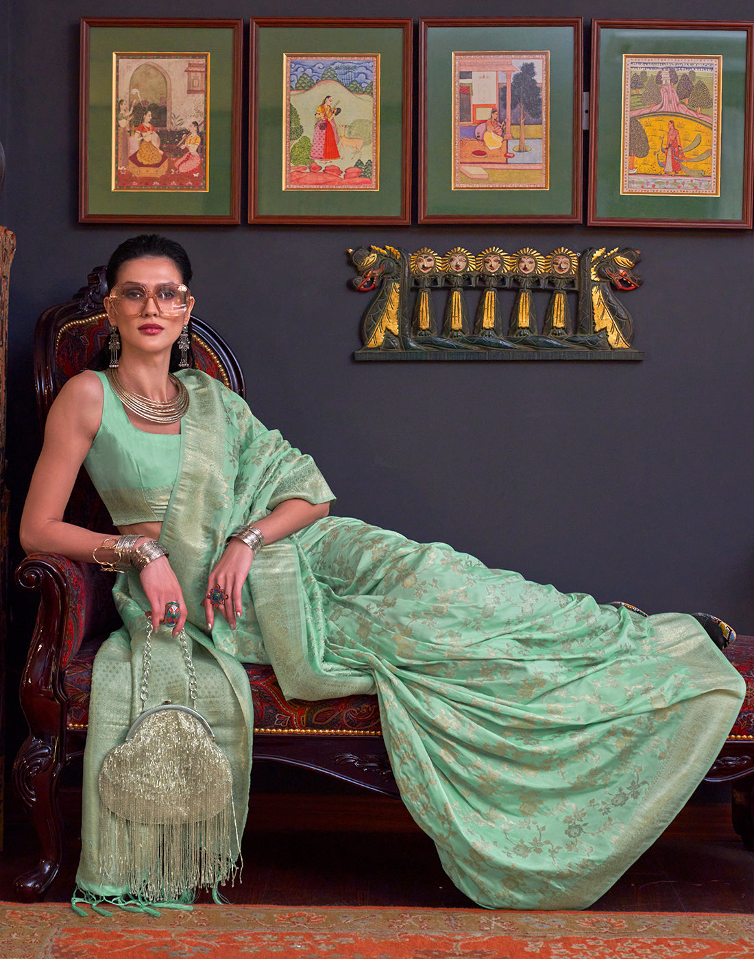 Mint Green Zari Woven Banarasi Katan Silk Saree,a stunning blend of heritage and modern sophistication. The enchanting Green green shade brings a fresh yet classic vibe, while the opulent zari work, meticulously woven into the luxurious Katan silk, adds a layer of splendor that catches the eye from every angle. This saree is perfect for grand occasions such as weddings, anniversaries, or any event where you wish to make a memorable statement.