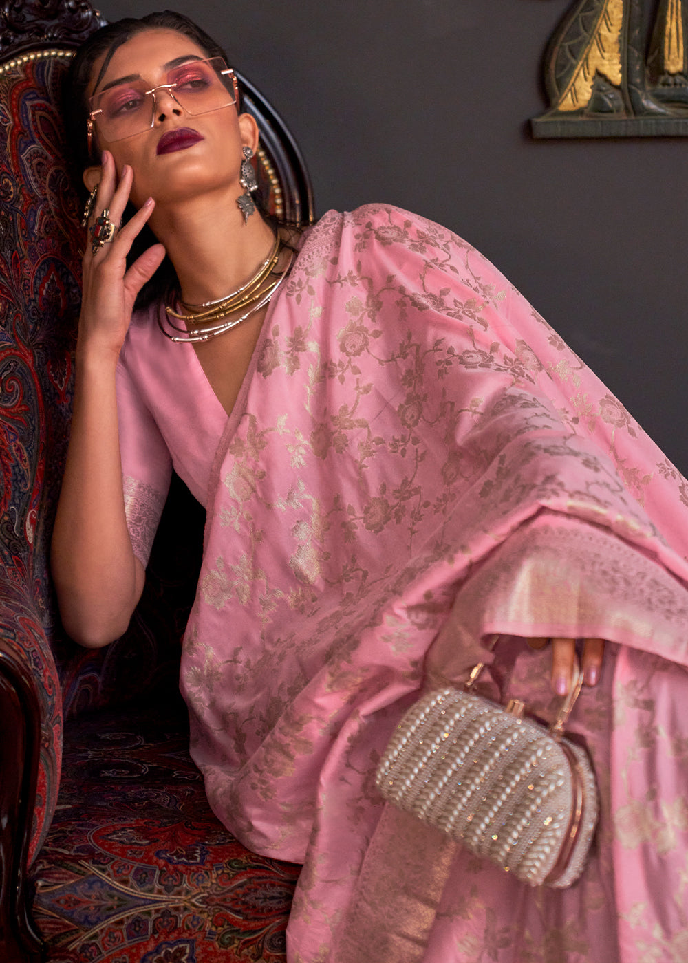 Persian Pink Zari Woven Banarasi Katan Silk Saree
