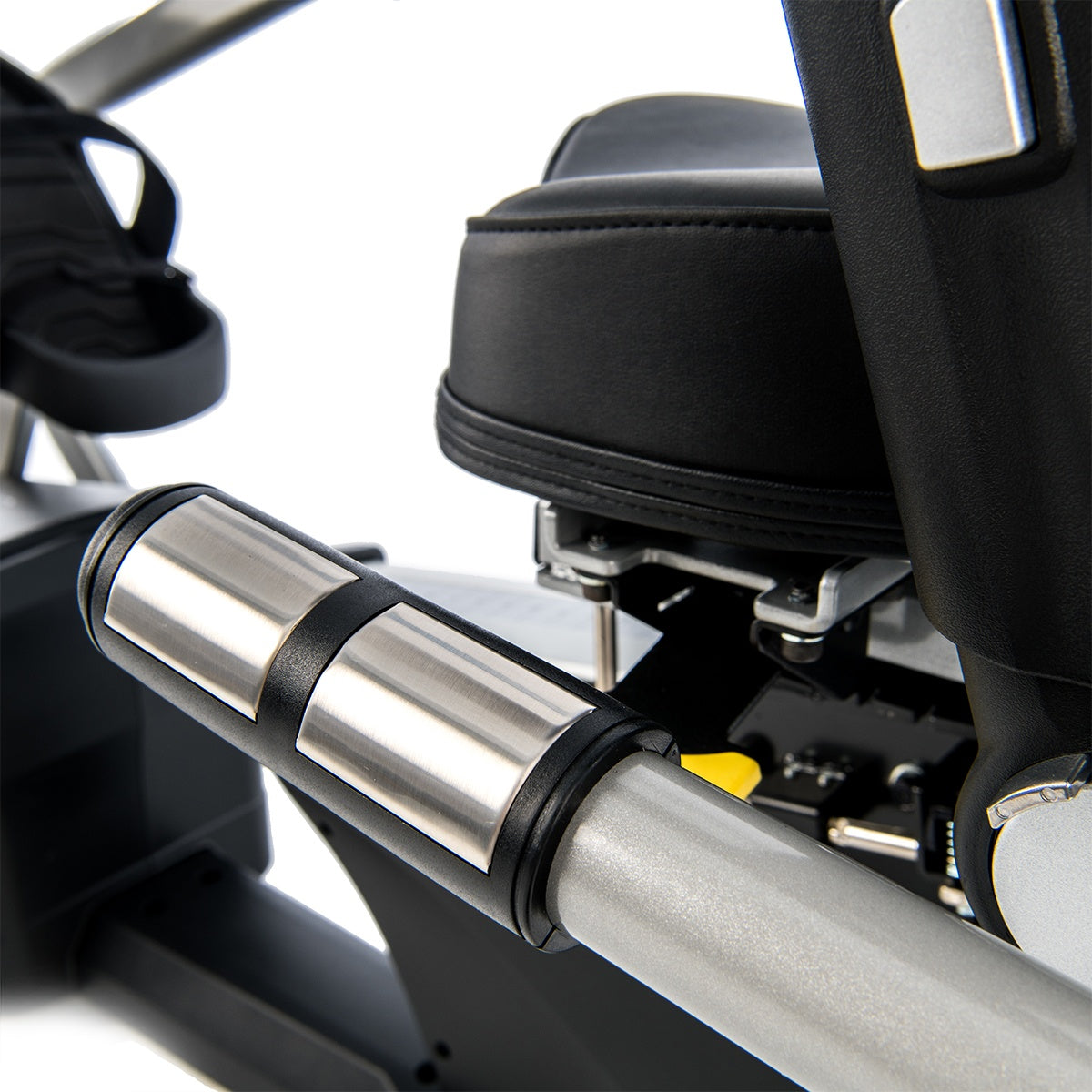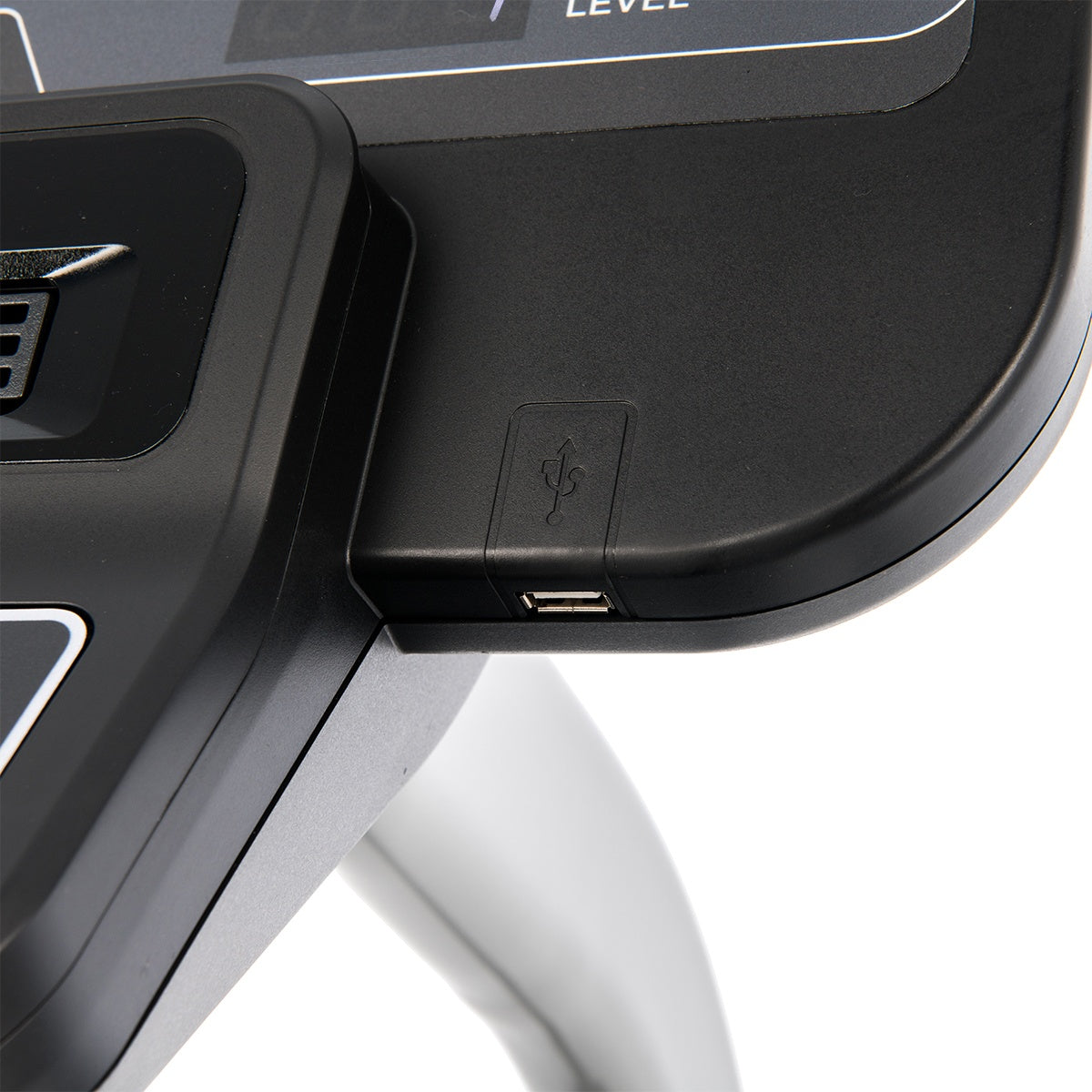 The electronics are designed to provide intuitive operation. The console features a large easy-to-read display with a variety of program options for users of all fitness levels, an integrated fan to keep clients cool, and a USB charging port for keeping their device charged. The convenient seat-mounted hand pulse grip sensors provide heart rate monitoring on demand.