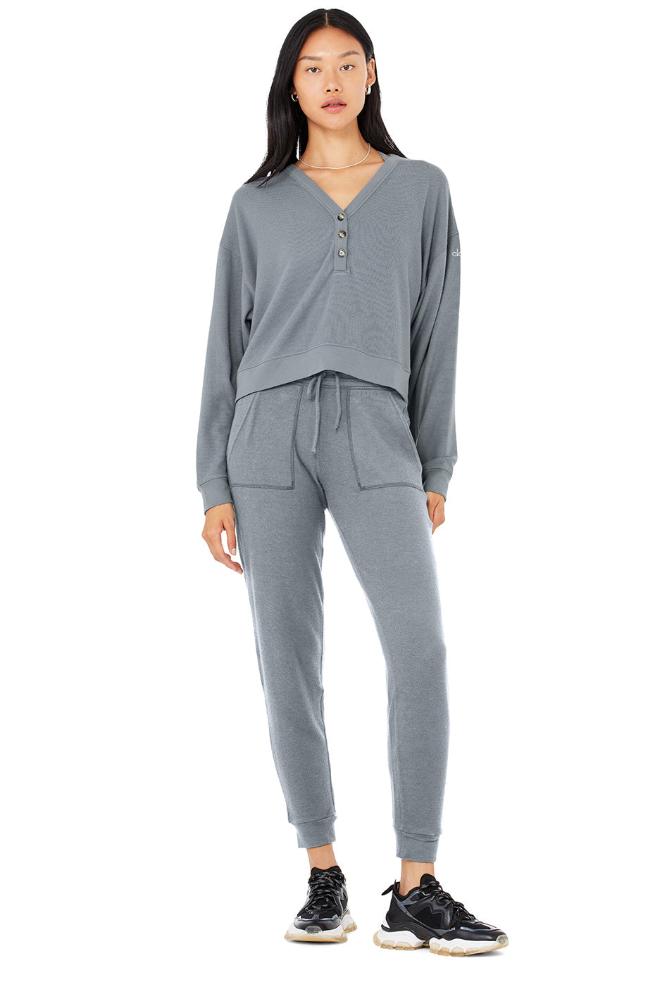Alolux Soho Cropped Henley & Soho Sweatpant Set - Steel Blue