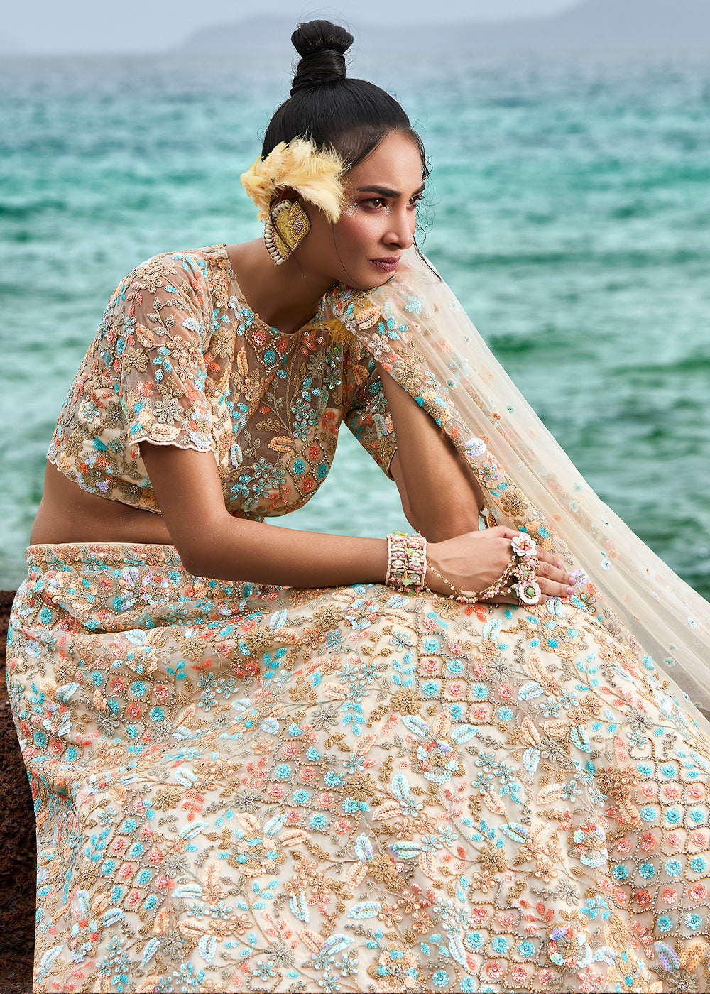 Ivory White Net Lehenga Choli with Sequins,Coding & Zarkan work